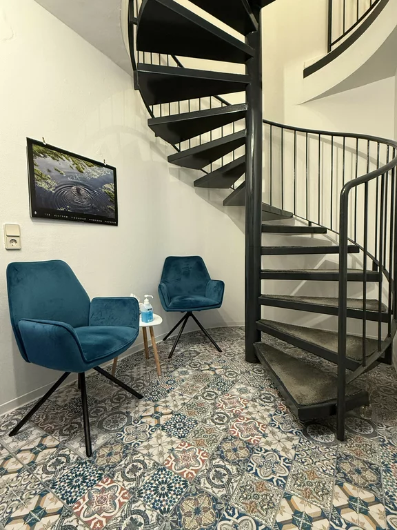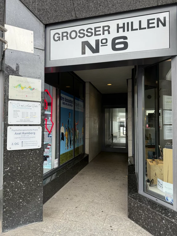 Die Praxisräume am Großen Hillen 6 bieten eine angeneheme Atmosphäre, in der sich Kinder und Jugendliche, aber auch Erwachsene, wohlfühlen können. Der Behandlungsraum befindet sich im zweiten Obergeschoss und bietet neben einer gemütlichen Einrichtung, genügend Platz für Kinder zum Spielen und für Jugendliche und junge Erwachsene eine ruhige Umgebung, um sich im Gespräch zu öffnen. Darüber hinaus ist die Praxis gut erreichbar (Stadtbahn-Linie 5 / Bus-Linien 123, 124, 373, 800 jeweils Haltestelle: Großer Hillen). Für die Anfahrt mit dem Auto besteht i.d.R. die Möglichkeit direkt am Großen Hillen zu parken.